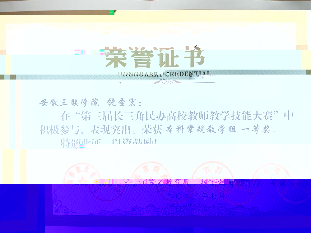 饒聖宏榮獲第三屆長三角民辦高校教師教學技能大賽本科常規教學組一等獎
